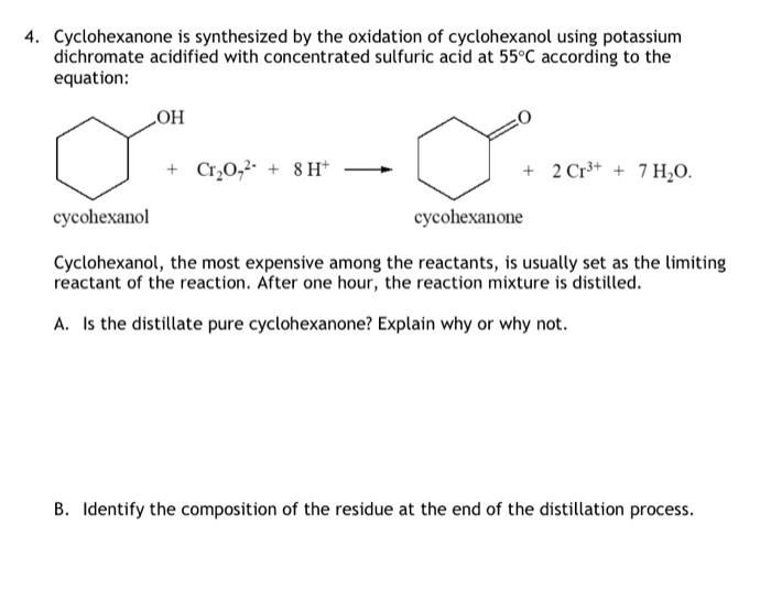 Solved 4 Cyclohexanone Is Synthesized By The Oxidation Of Chegg Com